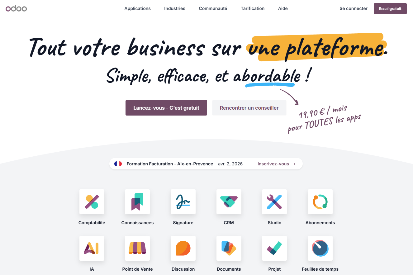 Suite d'applications d'entreprise open-source intégrant l'e-invoicing au cœur de son ERP.